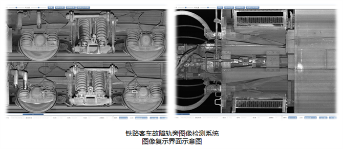 該系統(tǒng)是鐵路車輛運(yùn)行安全監(jiān)控系統(tǒng)的重要組成部分,利用軌旁安裝的高速相機(jī),檢測運(yùn)行客車走行部、轉(zhuǎn)向架、制動(dòng)部件、車端連接及車體下部懸吊件等可視部位圖像,實(shí)時(shí)傳輸至室內(nèi)監(jiān)測終端進(jìn)行分析,并利用人工檢測發(fā)現(xiàn)運(yùn)行車輛異常情況并報(bào)警。